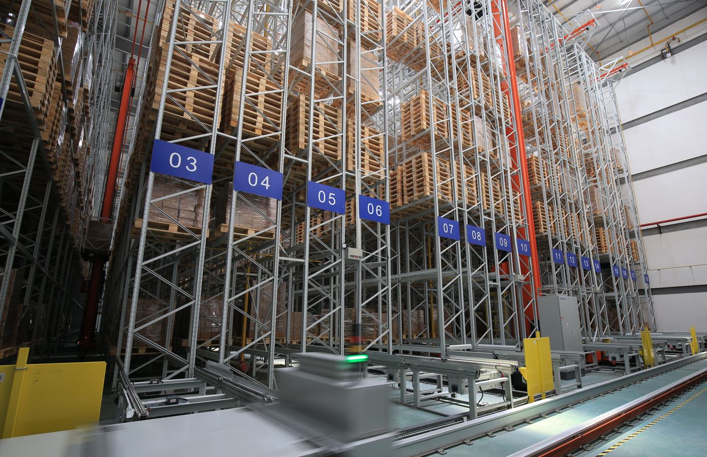 光伏產業在最近幾年時間里得到飛速發展,可分為光伏原材料如多晶硅、玻璃等以及光伏組件。大多數光伏產品是以整托形式出入庫,其重量較重,尺寸較大,且存儲量一般較大,給自動化物流設備帶來一定的挑戰。